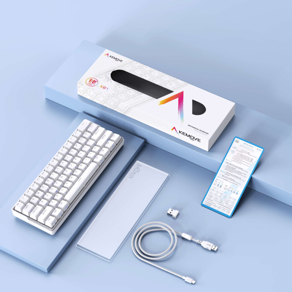 The KEMOVE DK61 has all the most important things on a mechanical keyboard. Good look, plastic case but robust and good enough feel, switches brands and many switches colors to choose and hot swappable, PBT keycaps double shot, lateral serigraphy for function keys, RGB leds with many effects and intensity, detachable and reversible USB cable on both sides, cable connection and wireless conection with a big battery capacity for a up to three devices configured and easily change between them, dust cover included on the package. All this for a affordable price that makes this 60% keyboard one of the best recomendations on this price range and on more expensive ranges.