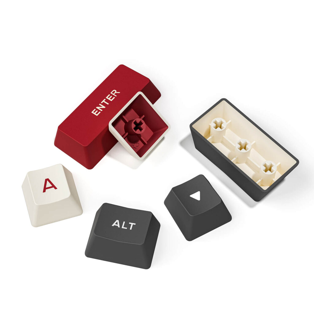 Product Features: The Emberstone Keycaps are a set of uniquely colored keycaps, featuring a combination of bean red, charcoal gray, and white, creating a distinctive contrast of flame and stone. Each keycap is crafted from high-quality materials to ensure durability and comfort. These keycaps are meticulously designed and manufactured using advanced techniques, ensuring clear patterns and resistance to wear and fading.